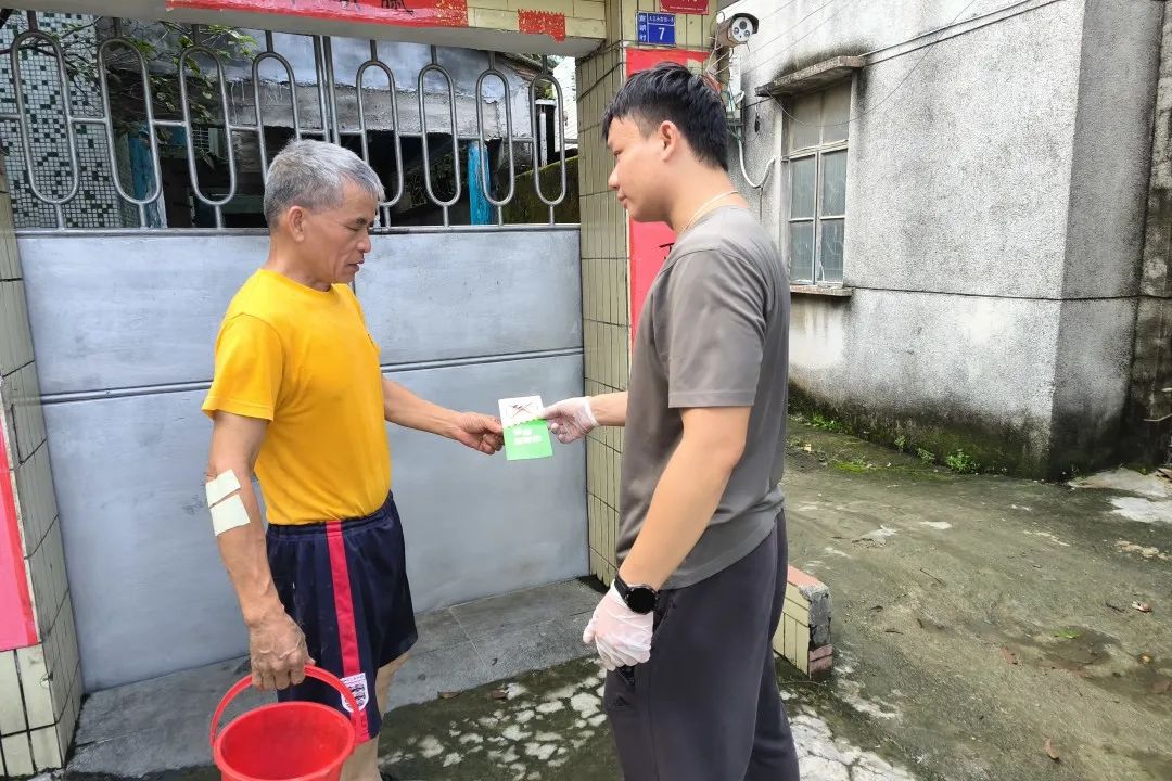作為曾在廣西防城港部隊駐守過的 “老兵”,嚴兆雄連日來幾乎每天都和村委會工作人員一起走街串巷,排查積水容器、清理衛生死角,手機里存著各種 “問題點位” 的照片。嚴兆雄對 “防控” 二字格外敏銳:“基孔肯雅熱、登革熱都是‘防’字當頭,就像當年駐守一樣,得盯著每一個‘漏洞’。” 說著,又發現一犄角旮旯藏有積水,迅速上前倒掉。曬得黝黑的臉上掛著汗珠,他笑著說,“比起當年站崗,現在為鄉親父老守健康,值得!”