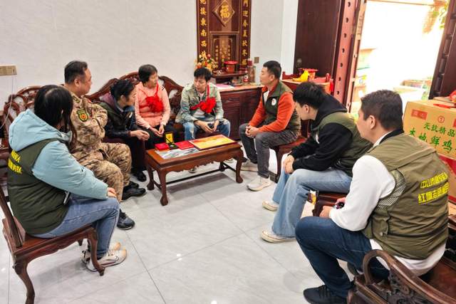新年伊始,喜報頻傳。近日,沙溪鎮陸續收到多份立功受獎喜報,目前已收悉10位現役軍人榮獲2025年度“四有”優秀士兵(軍官)。為弘揚擁軍優屬光榮傳統,營造“一人參軍、全家光榮”的濃厚氛圍,自1月6日起,沙溪鎮黨委、鎮政府領導率領退役軍人服務中心、武裝部及各村(社區)負責人組成慰問組,分批登門為優秀士兵家屬送上滿載榮譽的喜報和新春祝福。 慰問現場,慰問組為軍屬佩戴光榮紅花,宣讀喜報,詳細介紹士兵在部隊的優異表現,對軍屬們默默支持國防事業、鼓勵親人建功軍營表示衷心感謝。接過喜報的家屬們臉上洋溢著自豪與喜悅,表示將繼續做好堅強后盾,叮囑孩子在部隊安心服役、再立新功。