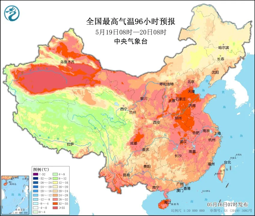 詳情:據中國天氣網消息,5月17日至19日,南疆盆地、華北平原、黃淮等地的部分地區將有35℃以上高溫,局地氣溫甚至可超37℃。省會級城市中,西安、鄭州、濟南都有望迎來今年首個高溫天氣,普遍早于常年,其中西安、鄭州將遭遇高溫“兩連擊”,公眾外出還需注意防暑降溫。而南方的暖熱程度遠遠不及北方,由于云量較多,多地還有雨水出沒,氣溫普遍會低于常年同期,江南大部最高氣溫普遍在30℃左右,南北氣溫倒掛。(來源:中央氣象臺、@中國天氣網)