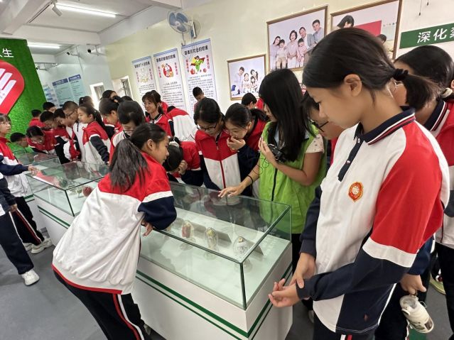 活動現場,禁毒社工帶領學生們進入禁毒教育基地,通過通俗易懂的語言,為學生們講解了中國禁毒史、毒品的種類、毒品對人器官的危害等知識。活動中,部分學生對毒品仿真品表現出濃厚興趣,他們相互觀察、深入交流新型毒品的偽裝包裝樣式與特征。通過這些互動環節,有效激發了學生們學習禁毒知識的熱情,促使他們樹立起“健康認知,綠色無毒”的正確理念。