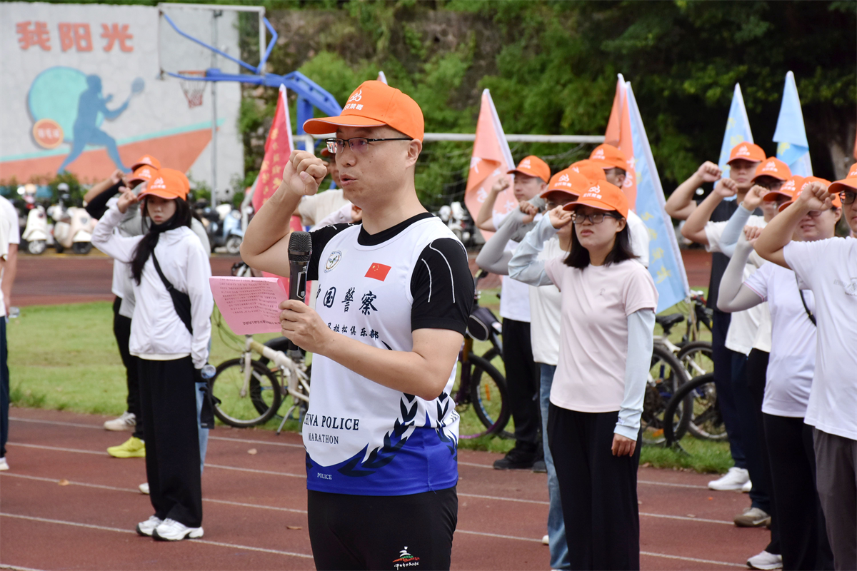本活動分為三個流程:首先,由阜沙中學學生代表宣讀禁毒倡議書。擲地有聲的禁毒倡議,聲聲入耳的禁毒理念,鞭策著廣大群眾始終銘記銷煙歷史,傳承禁毒使命。緊接著,鎮領導為熱心企業、單位授予牌匾,感謝社會各界力量參與禁毒工作,為阜沙禁毒貢獻自己的力量。最后,張濤代表鎮黨委政府致辭。他強調,毒品預防教育在禁毒工作中起重要作用,要始終堅持預防為主,將“不能、不敢、不愿吸販毒”的無毒理念扎根人民群眾心中,從源頭、從思想上根治毒品問題。他指出,禁毒工作是一場馬拉松,希望大家燃放激情,保持耐力,積極投身禁毒工作,帶領廣大人民群眾共同抵制毒品,建設和諧穩定、綠美新阜沙。隨后,張濤帶領所有人員宣誓,一聲聲鏗鏘有力的誓詞,讓禁絕毒品的使命初心永銘心中,讓腳下的步伐更加堅定有力。伴隨著出發信號響起,騎行隊伍以車輪為畫筆,在夏日畫卷中勾勒出“健康人生,綠色無毒”的亮麗底色。