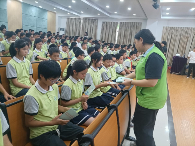 活動過程中,公安人員通過PPT形式為學生們講解交通安全知識,包括“交通法律法規”“違反交通規則的危害性”等,并播放了“鬼探頭”式交通事故警示教育片,讓學生們在上學、放學途中要保持警惕心和細心,明白到遵守交通規則的重要性。期間,禁毒社工派發禁毒宣傳單張向學生們普及禁毒知識,重點強調依托咪酯-上頭電子煙的危害性,教育引導學生們提高識毒、防毒、拒毒的意識和能力。